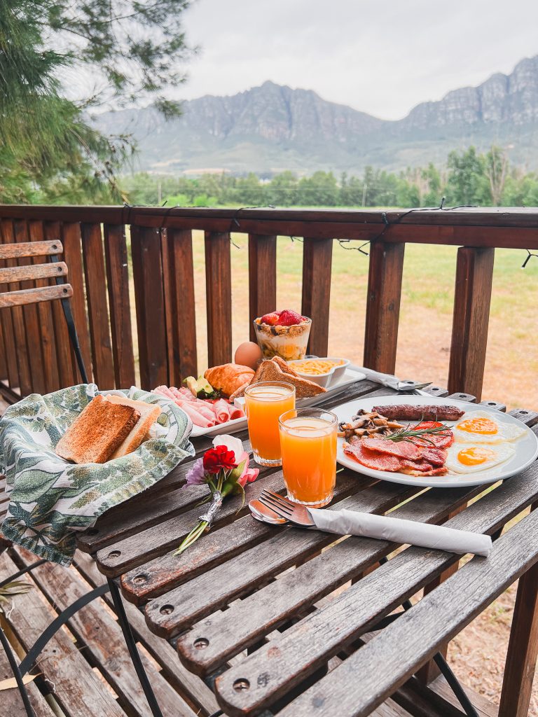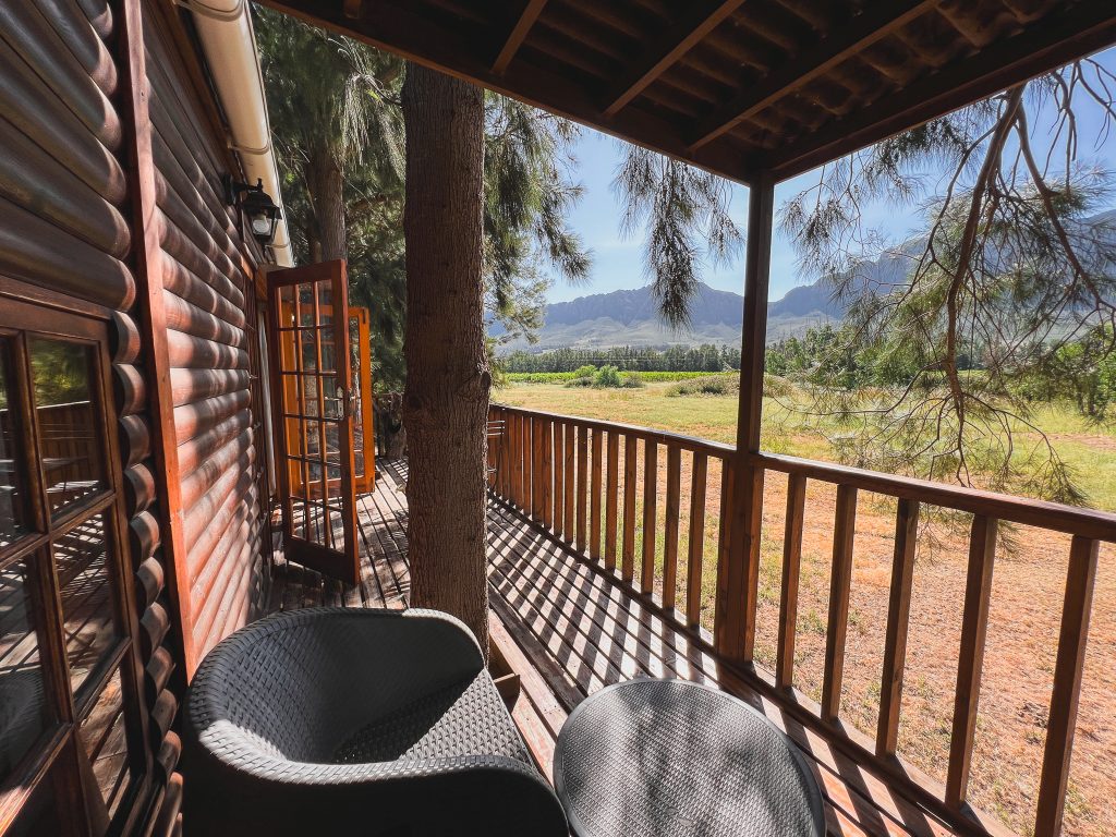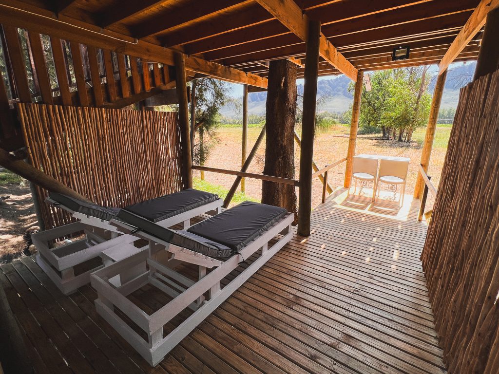 Perfect lovers retreat, with queen size bed, and en-suite bathroom with large spa bath, air-conditioned and private balcony with views of game, mountains and orchards . Breakfast served directly to tree house.