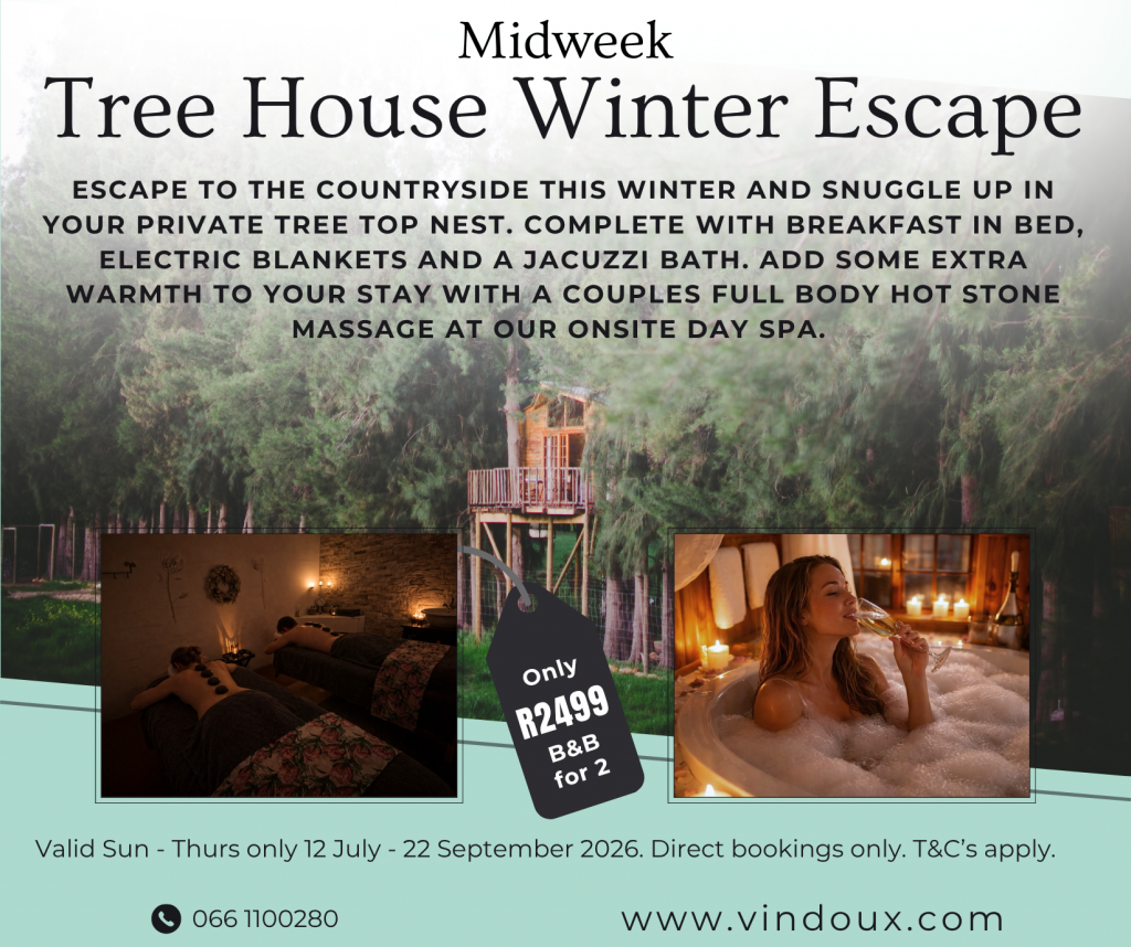 Whether you are looking for a romantic tree house breakaway, or a cozy self-catering retreat, we have a winter special to suit you!